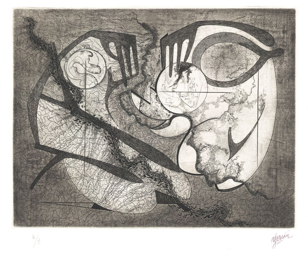 Burin, aquatinte, pointe et échoppe sur cuivre